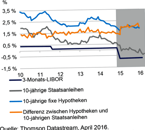 Data from countries that have already implemented negative interest rates suggest they are providing limited stimulus to the domestic economy. Our analysis has shown that better credit conditions or devaluation of their own currency cannot be attributed to negative interest rates so far – at least not as long as banks are stretching their business models significantly. We therefore believe that introducing negative interest rates, or even lowering them further into negative territory, will create major challenges in the long run.