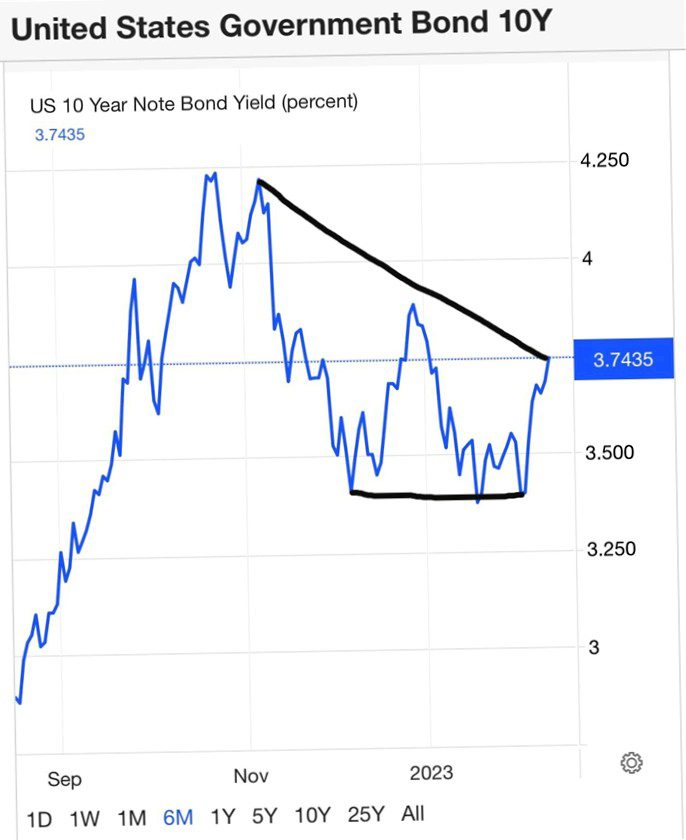 In my 2023 forecast, my 10-year yield range was in between if the economy remained stable 3.21% and 4.25%which equates to mortgage rates staying in a range of5.75% to 7.25%. For some time I have discussed how hard it would be to break below 3.42% with subsequent bond buying, meaning mortgage rates would continue to fall. The market made some attempts to break this level, but now bond yields have turned upward.